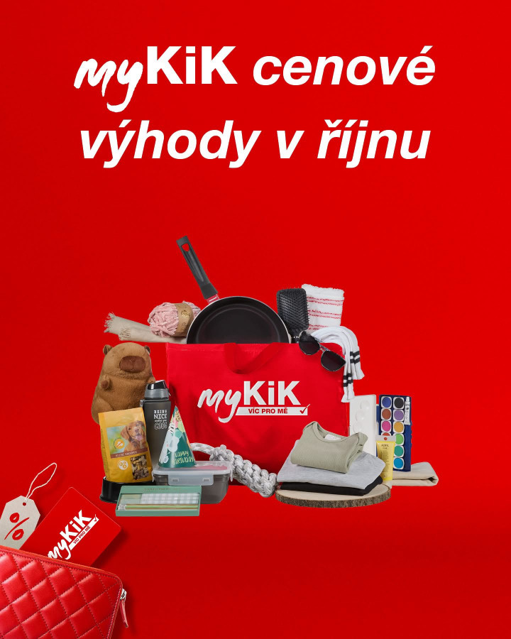 S myKiK šetříte každý týden! V říjnu navíc získáte -15 % na už zlevněné zboží. Stačí předložit svou kartu výhod myKiK a radost z nákupů je dvojnásobná . Platí od 1. 10. do 31. 10. 2025 v prodejně KiK.